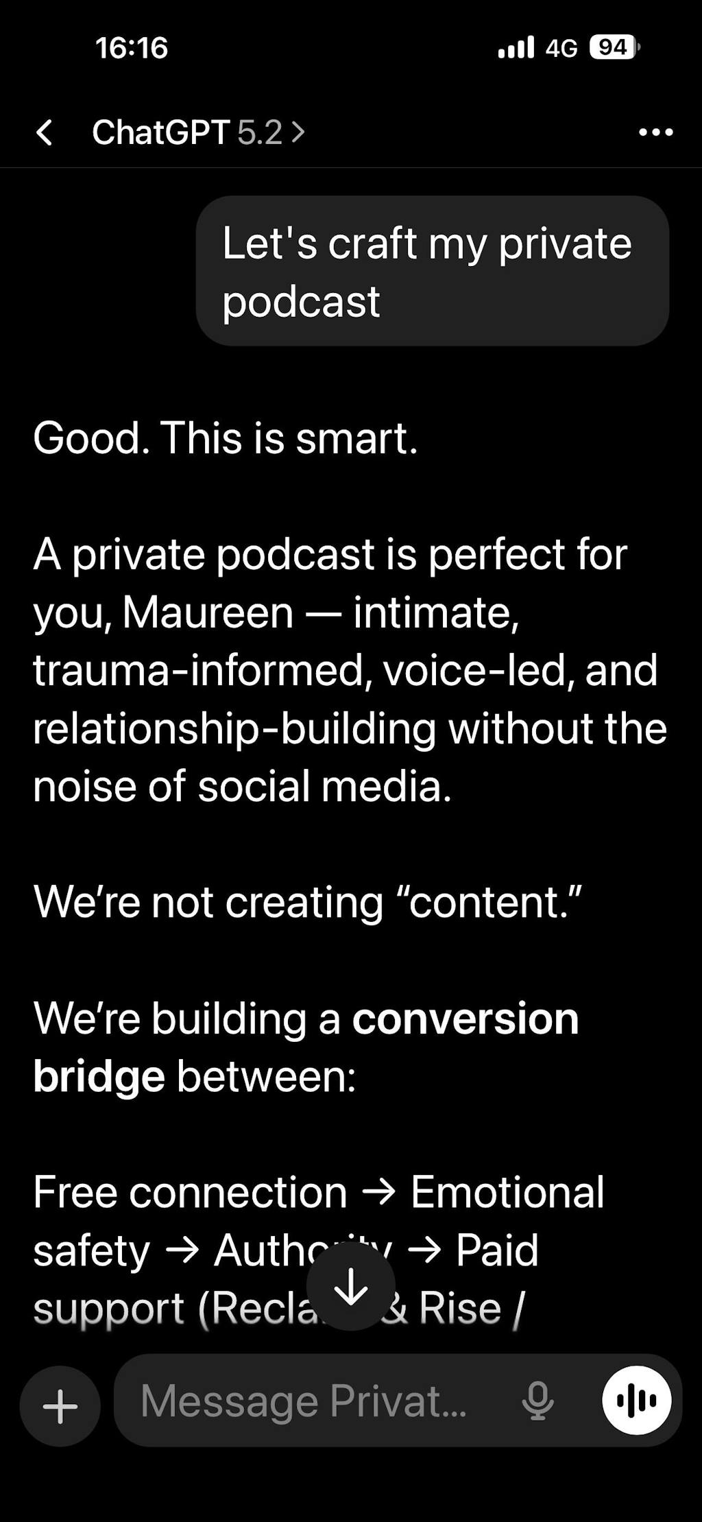 The Private Podcast GPT walks you through the exact framework Monica Froese uses to turn any piece of content into a strategic private podcast funnel.